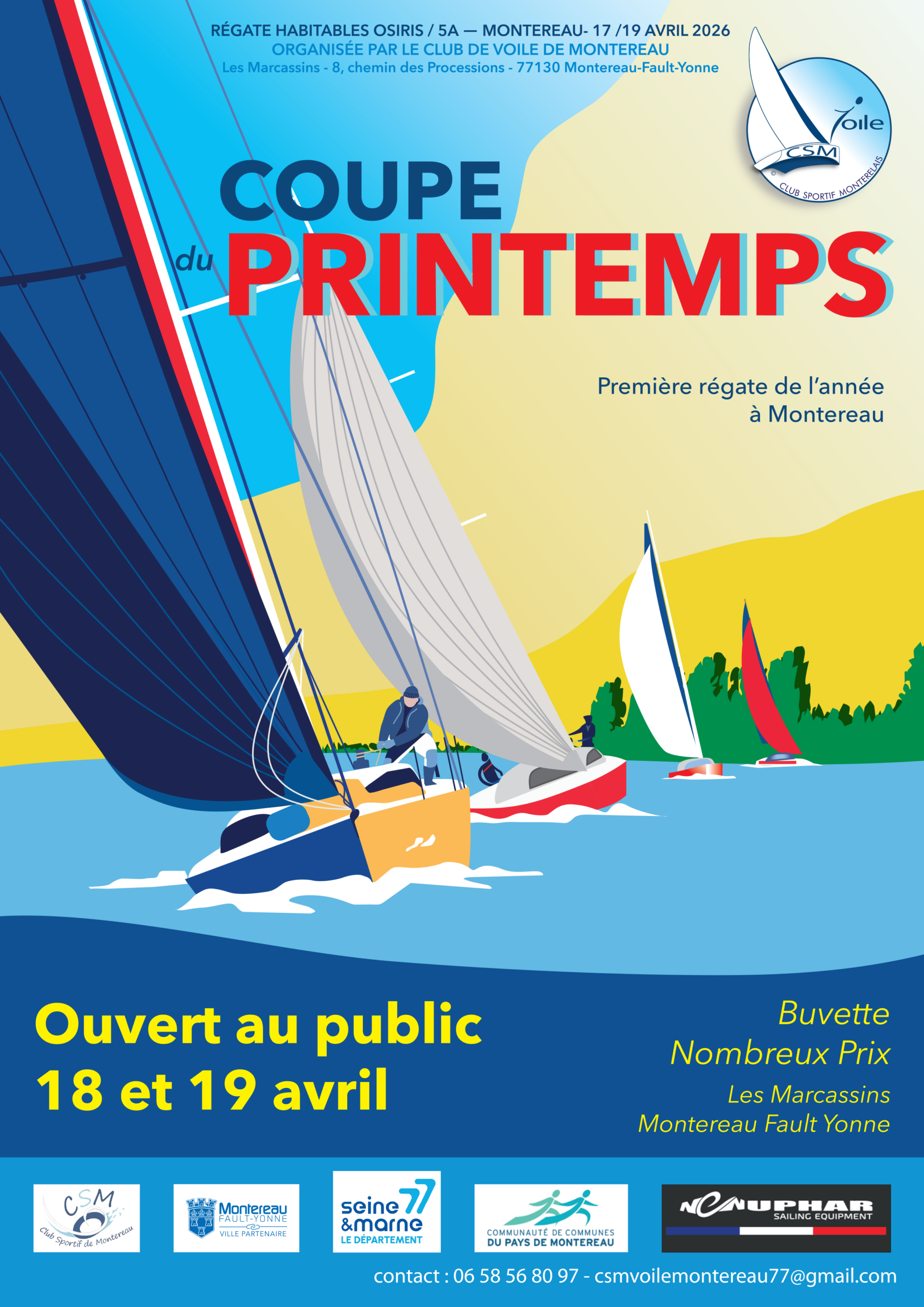 La Section Voile du Club de Montereau a le plaisir d’annoncer la première édition de la Coupe du Printemps, sur le plan d’eau des Marcassins.